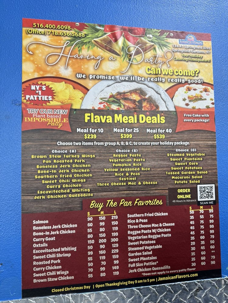 Jamaican Flavors is a Caribbean restaurant located in Springfield Gardens, NY, offering a variety of Jamaican delicacies. The menu includes specialties like Beef Patty, Jerk Chicken Patty, and Coco Bread. Customers rave about the flavorful patties, with one reviewer claiming them to be the best in the US. The service may have its drawbacks, but the food consistently impresses diners. The restaurant is known for its smooth catering process and delicious dishes like curry chicken roti. Overall, Jamaican Flavors is a popular spot for those craving authentic Jamaican cuisine in a casual setting. Whether you're looking for a quick bite or catering for a special event, this establishment is worth a visit.